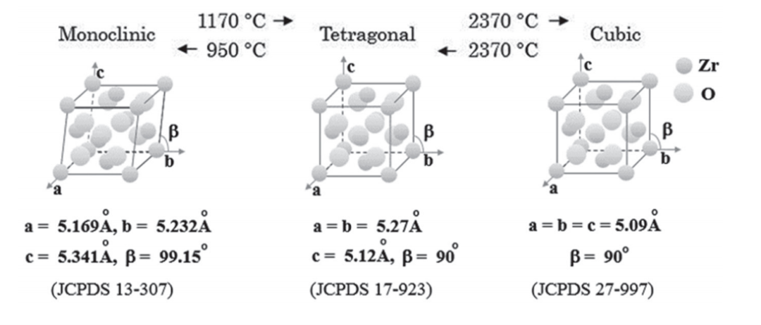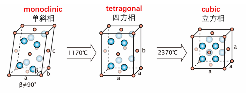 氧化鋯是一種存在單斜晶型(m)、四方晶型(t)和立方晶型(c) 3種形式的多晶材料,在一定溫度條件下會相互發生轉換。